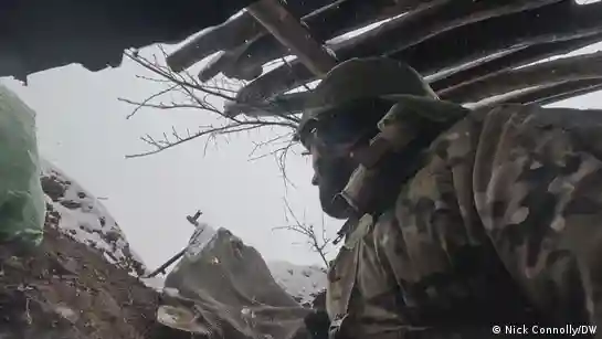 ConflictsUkraineMeeting Ukrainian citizen soldiers in the DonbasTo view this video please enable JavaScript, and consider upgrading to a web browser that supports HTML5 videoConflictsUkraine04/27/2023April 27, 2023DW’s Nick Connolly traveled to the Donbas frontlines to find out how Ukraine's citizen-soldiers are dealing with life in the trenches, under constant fire. https://p.dw.com/p/4QZ26Advertisement