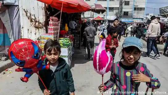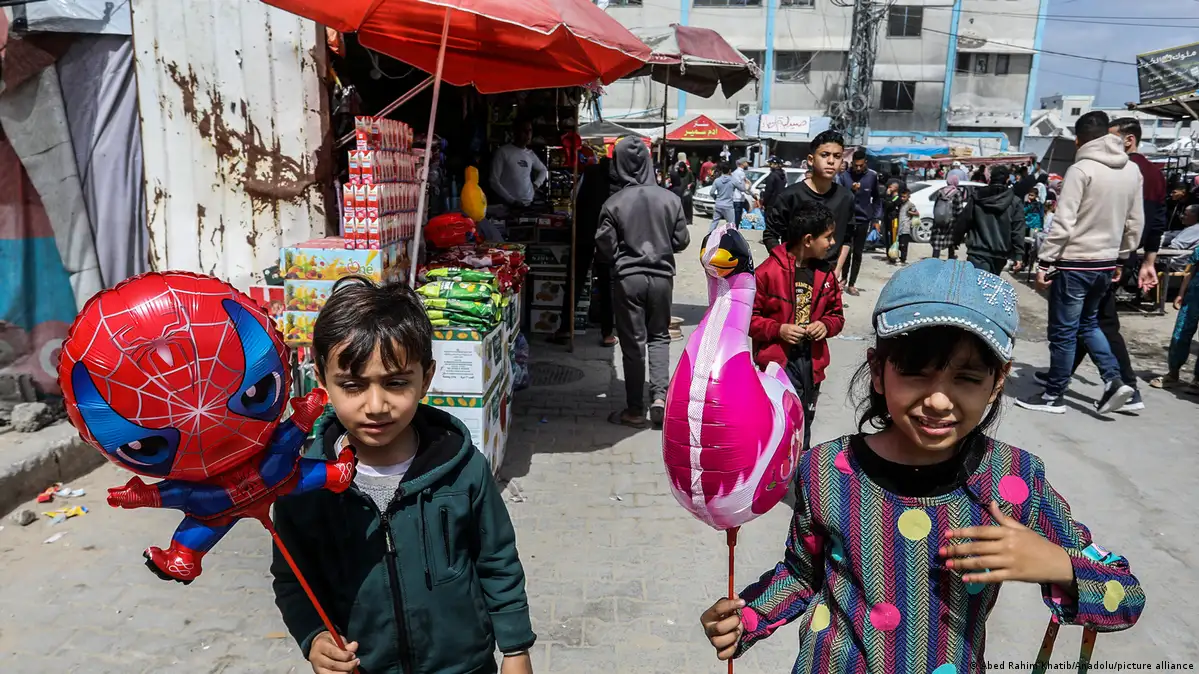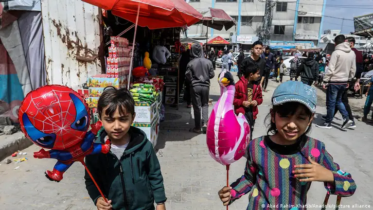 SocietyIsraelPalestinians in Gaza celebrate Eid amid ruinsTo view this video please enable JavaScript, and consider upgrading to a web browser that supports HTML5 videoSocietyIsraelKyle McKinnon | Ralf Jäckel03/29/2025March 29, 2025The Eid al-Fitr holiday marks the end of the holy Muslim month of Ramadan. In Gaza, this will be the second Eid al-Fitr since the start of the Israel-Hamas war.https://p.dw.com/p/4sScrAdvertisement