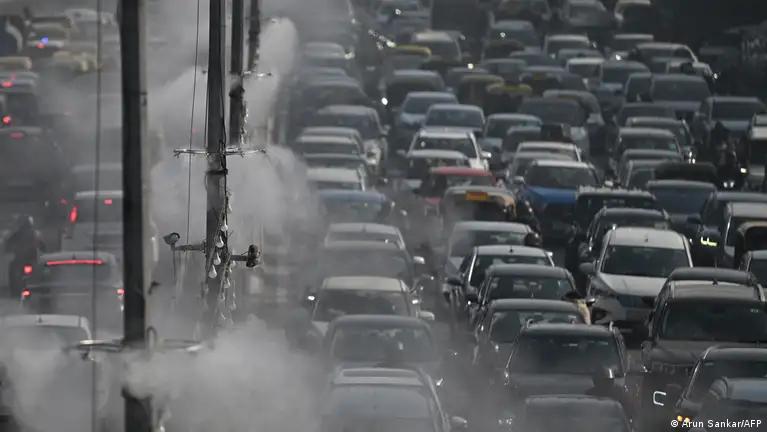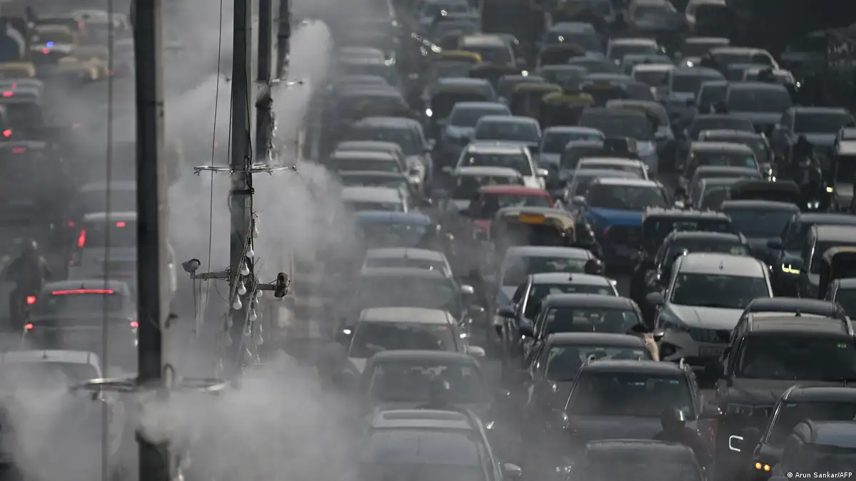 A thick smog blankets New Delhi as winter pollution spikes, trapping emissions from vehicles and crop burning.