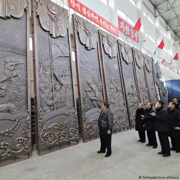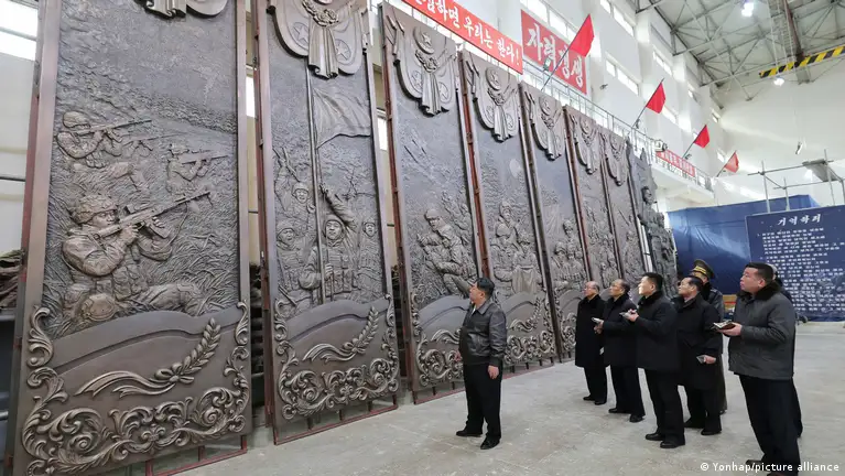 "(Kim) visitó el Estudio de Arte Mansudae el 25 de enero para inspeccionar la creación de esculturas que se erigirán y exhibirán en el Museo Conmemorativo de las Hazañas de Combate en las Operaciones Militares en el Extranjero", informó este lunes la agencia estatal KCNA.