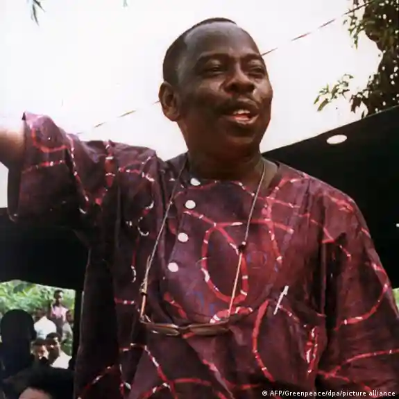 Ken Saro-Wiwa da aka rataye har lahira, sakamakon hukunci kan laifi da aka tabbatar kansa, bayan tabbatar da laifin nasa tare da wasu mukarrabansa takwas a yankin, bayan wata mummunar zanga-zanga da suka yi jallin haifarwa a yankin na Ogoni, ta janyo kisan wasu manyan sarakuna hudu na Ogoni, hukuncin kuma da a'lummar Ogoni ba ta aminta da ita ba har yanzu.
