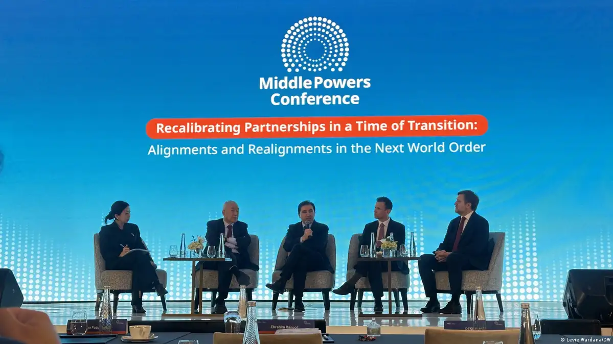 "Dan kami menyebut kekuatan-kekuatan ini sebagai middle powers (kekuatan menengah)," ungkapnya saat berbicara dalam forum diskusi internasional Middle Power Conference di Jakarta, Selasa (14/04).