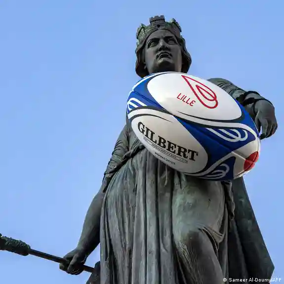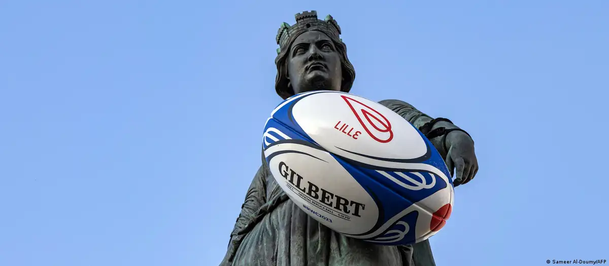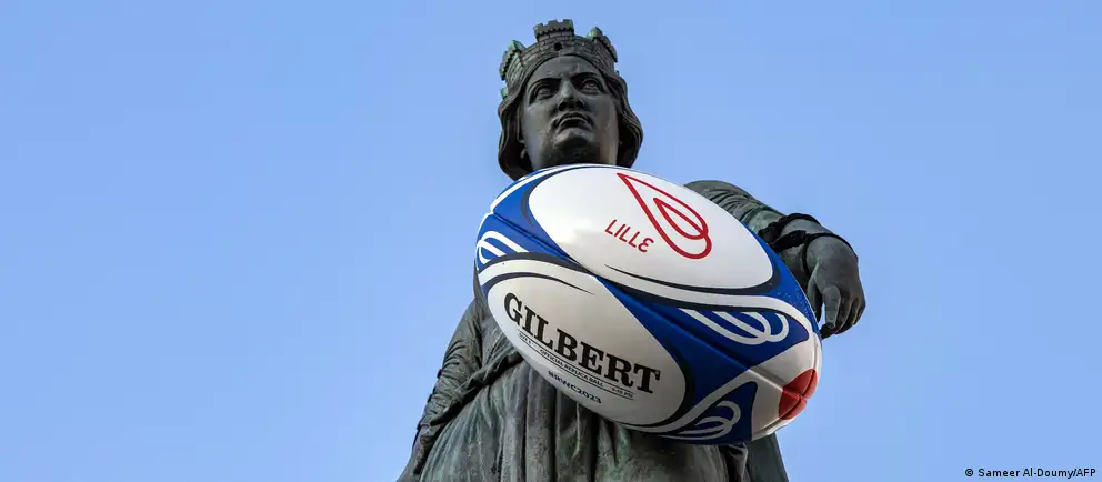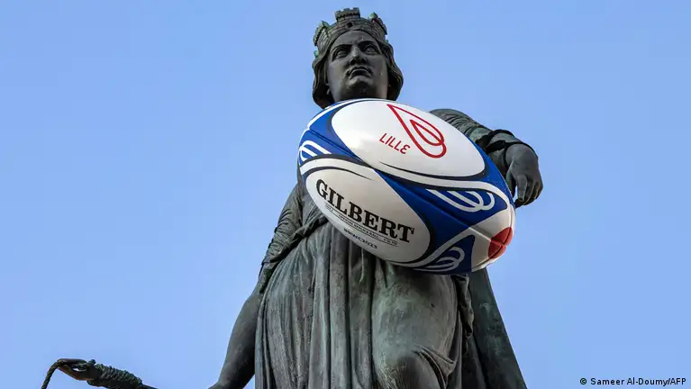 Познатиот меморијал, посветен на опсадата на Лил е украсен со рагби топка додека во градот се играат натрпревари од Светското првенство.