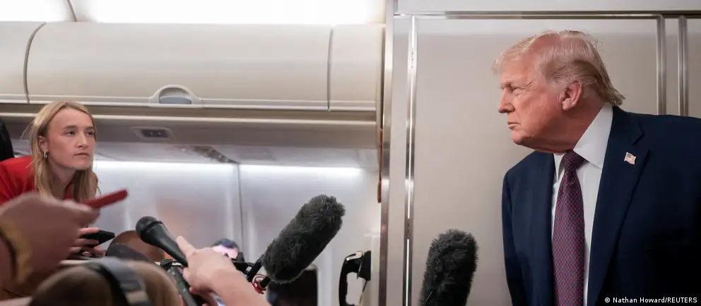 د امریکا متحده ایالاتو ولسمشر دونالد ترمپ د جمهوري ریاست په الوتکه کې د خبریالانو پوښتنې ځوابوي