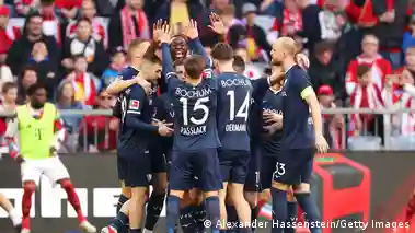 FutebolAlemanhaBundesliga: Derrota dos "Golias"To view this video please enable JavaScript, and consider upgrading to a web browser that supports HTML5 videoFutebolAlemanhaAmós Fernando11/03/202511 de março de 2025Na jornada 25, os três gigantes da Bundesliga, Bayern de Munique, Borussia Dortmund e Bayer Leverkusen, perderam pela primeira vez na história, na mesma jornada. https://p.dw.com/p/4rblPPublicidadeLegendas automáticas