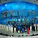 Артисты и волонтеры на сцене амфитеатра в Вероне во время церемонии открытия Паралимпиады