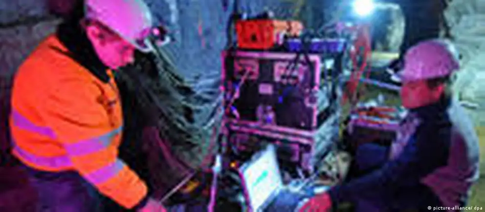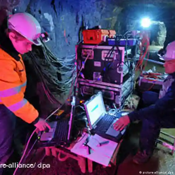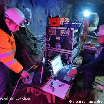 德国弗莱贝格工大师生在实验矿里实验地热钻机图像来源: picture-alliance/ dpa